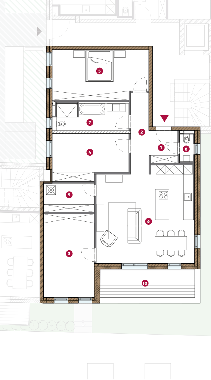 Sie sind nicht Vertragsbestandteil. Die in den Grundrissen und vom Visualisierer eingezeichneten Einrichtungsgegenstände gehören nicht zum vertraglichen Lieferumfang. Sämtliche Flächenangaben sind Circa-Werte. Eine detaillierte Baubeschreibung entnehmen Sie bitte dem Kaufvertrag oder wenden sich an den Vertrieb.