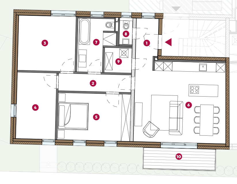 Sie sind nicht Vertragsbestandteil. Die in den Grundrissen und vom Visualisierer eingezeichneten Einrichtungsgegenstände gehören nicht zum vertraglichen Lieferumfang. Sämtliche Flächenangaben sind Circa-Werte. Eine detaillierte Baubeschreibung entnehmen Sie bitte dem Kaufvertrag oder wenden sich an den Vertrieb.